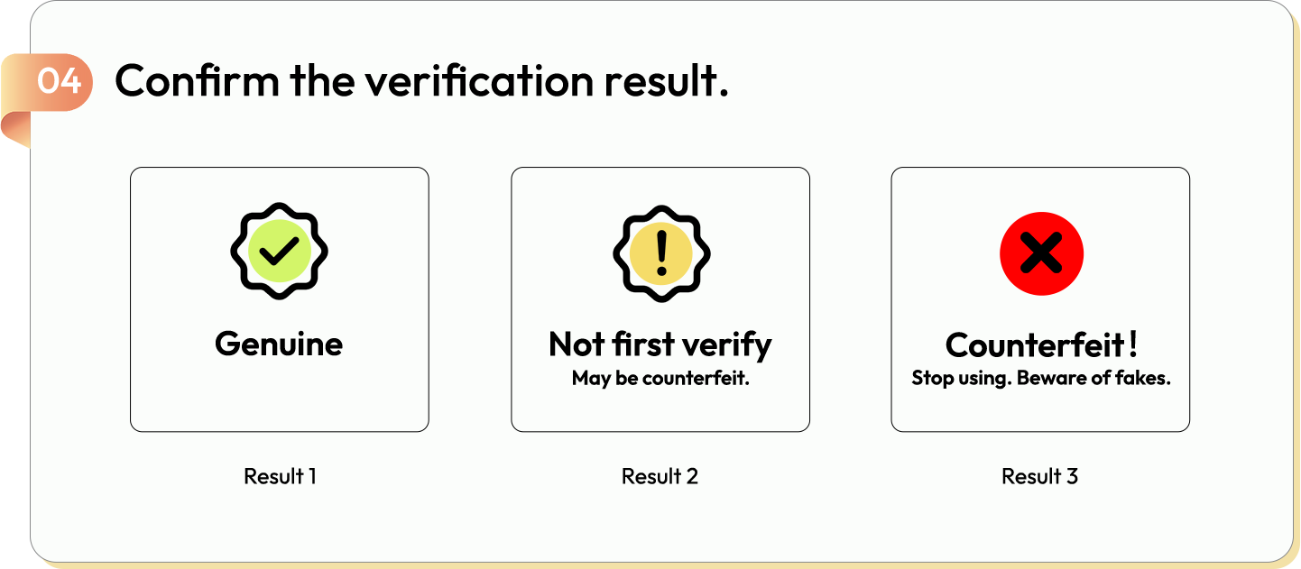 - 扫描二维码或输入防伪码后,系统会自动验证产品真伪。