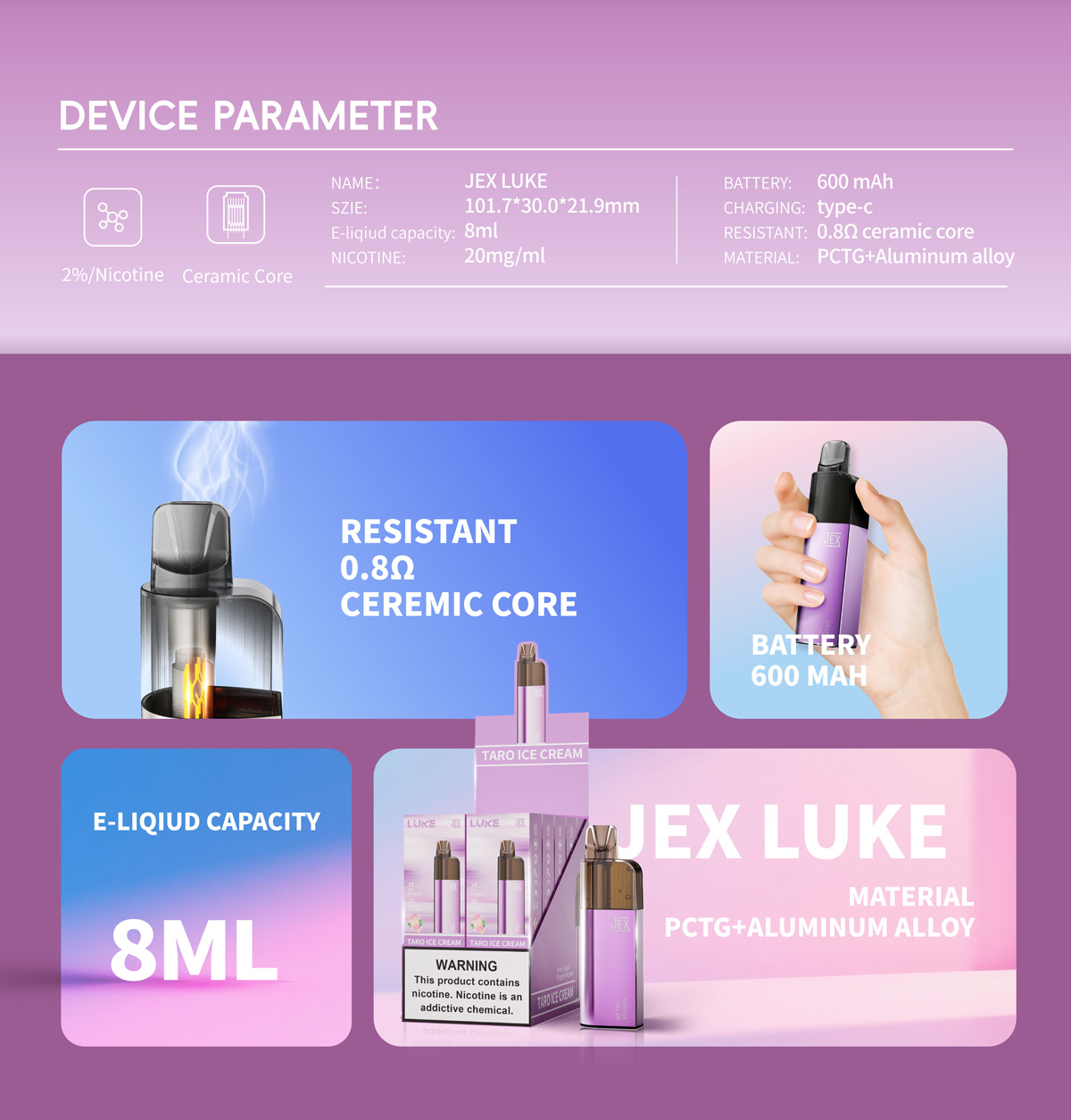 极星JEX LUKE 一次性电子烟-底部灯光效果-口味选择多